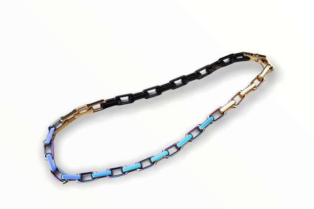 Matisse CHAIN NECKLACE ゴールド、ブラック、玉虫カラーを組み合わせた重量感のあるチェーンネックレス。 【material】 STAINLESS STEEL PLATING 【size】 幅約1cm 約55cm カラーリング、組み合わせに個体差あり。 小傷、変色がある場合がございます。 ご注文後のキャンセル、サイズ変更はできかねます。予めご了承下さい。
