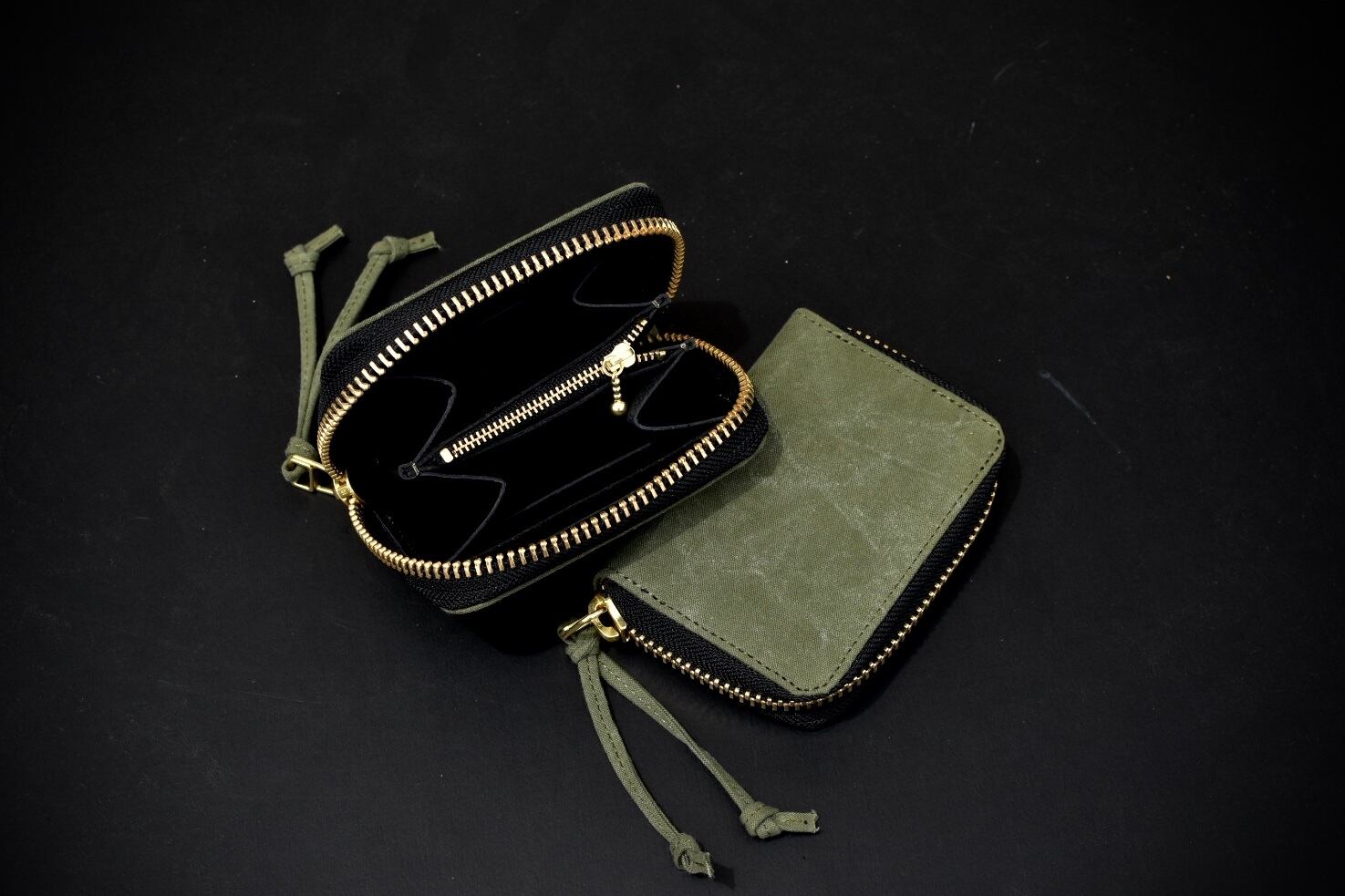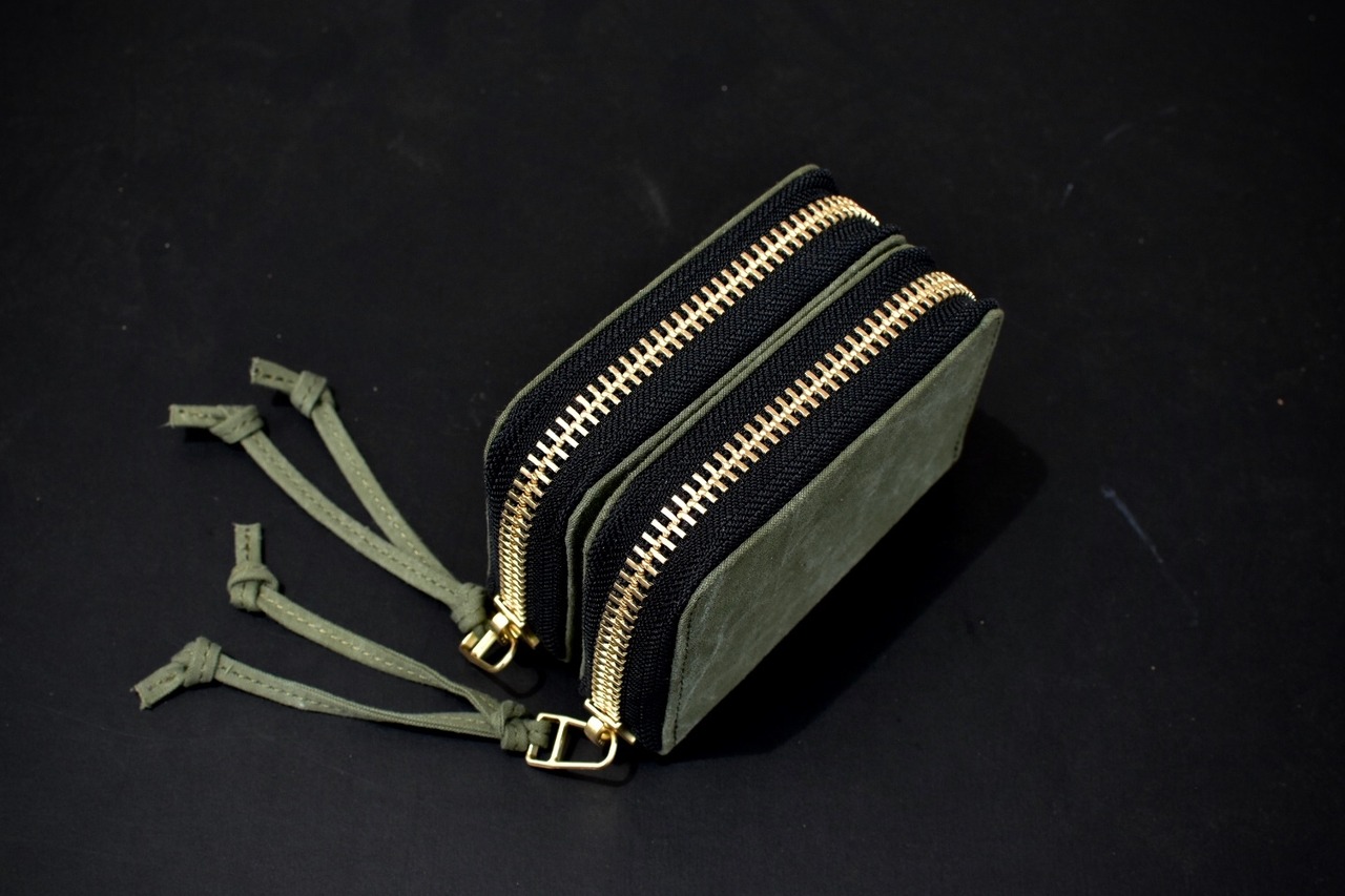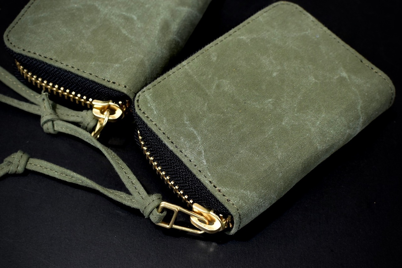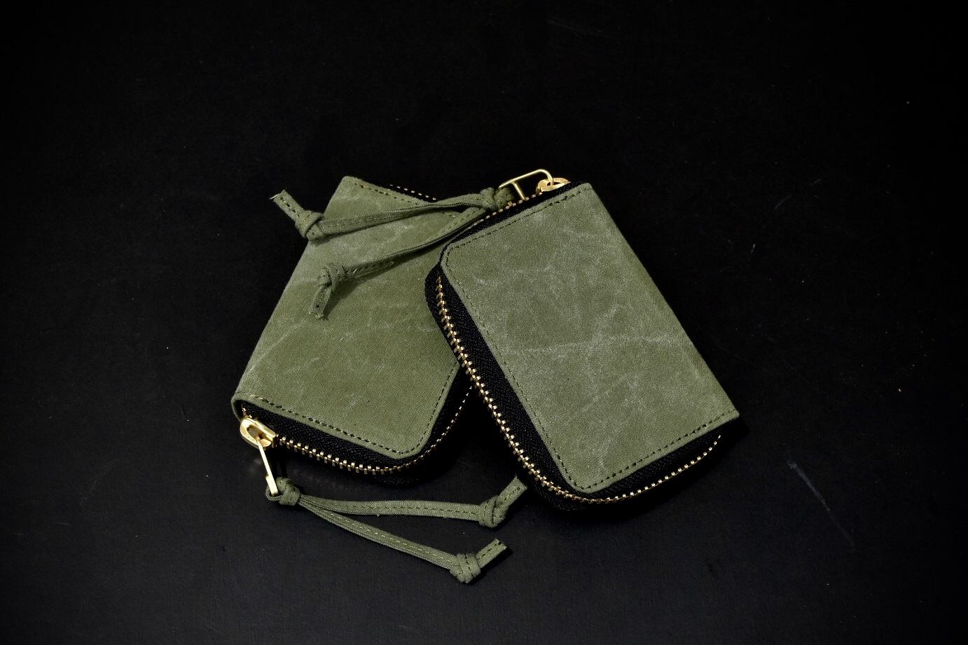 ヴィンテージのミリタリーテント生地を解体し使用したラウンドファスナー ウォレット。