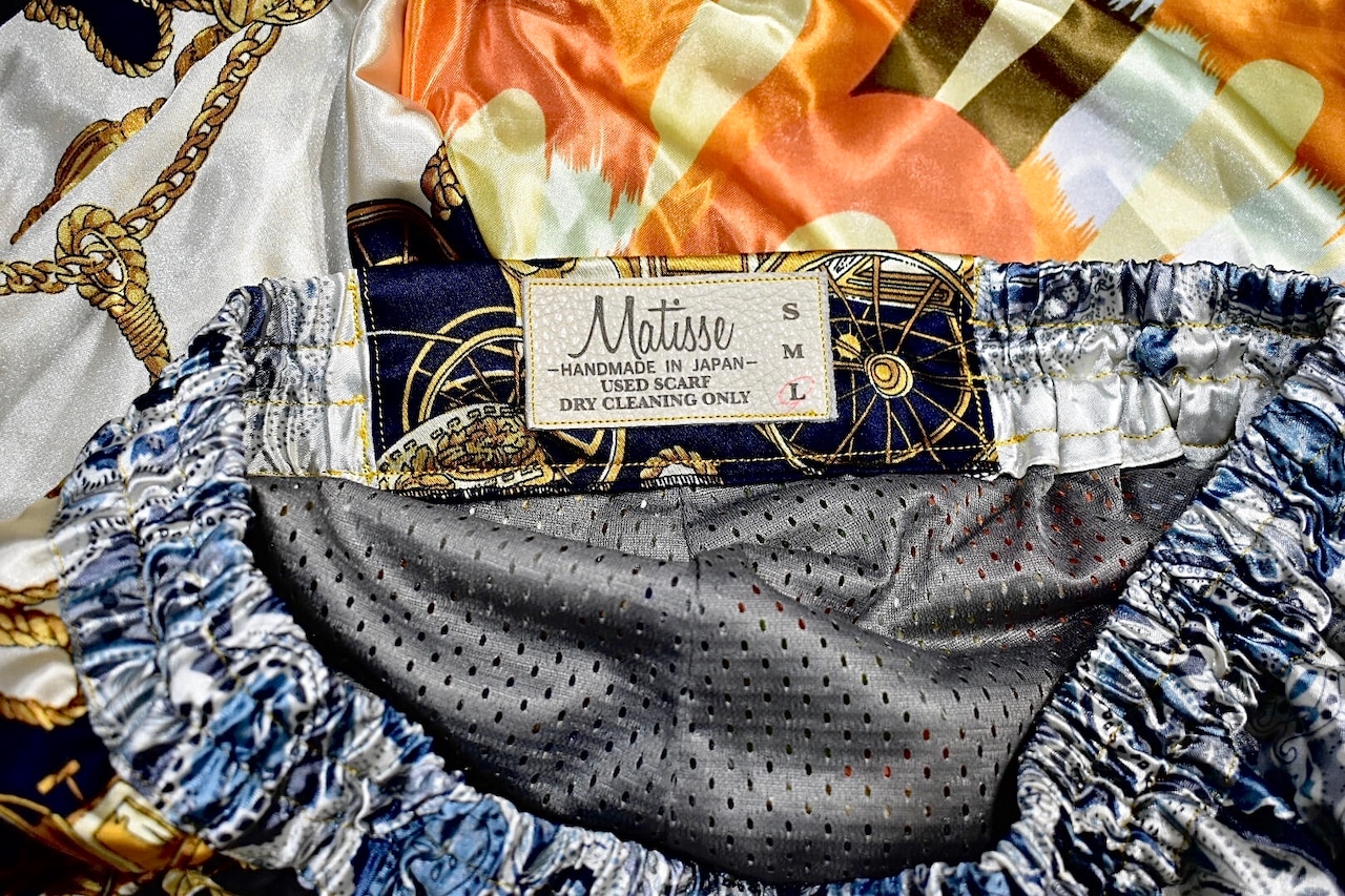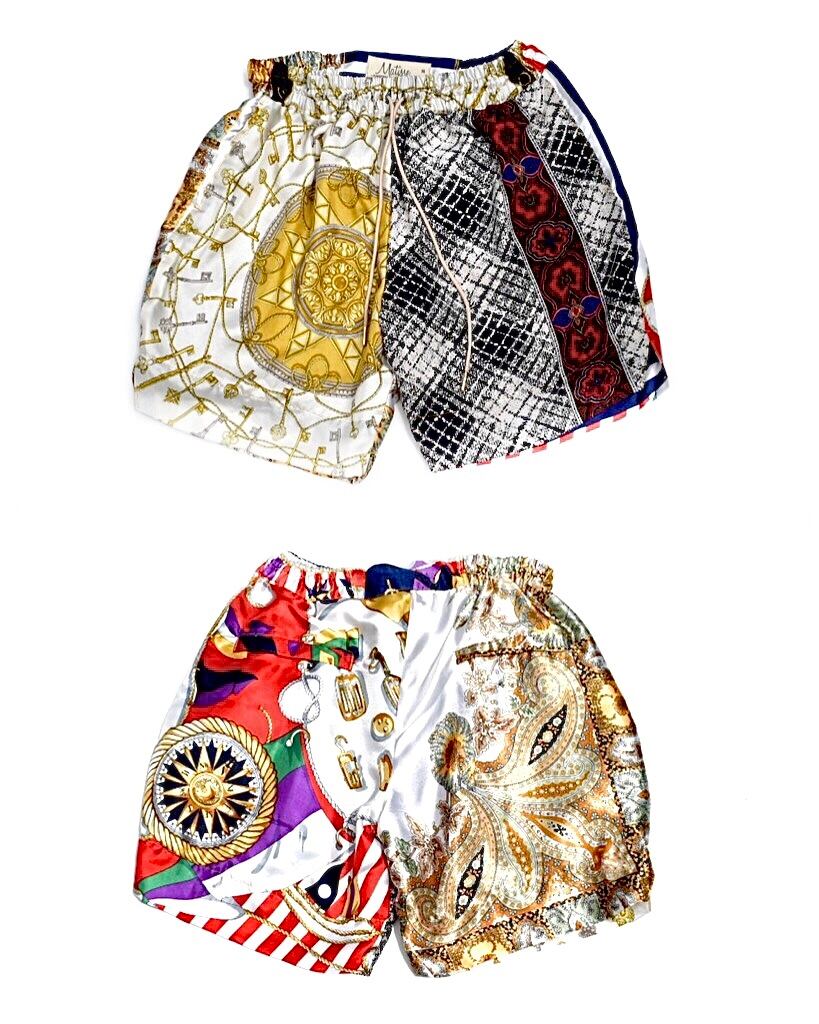USED スカーフをパッチワークしたバスケットボール ショーツ。