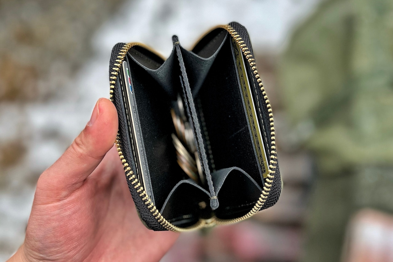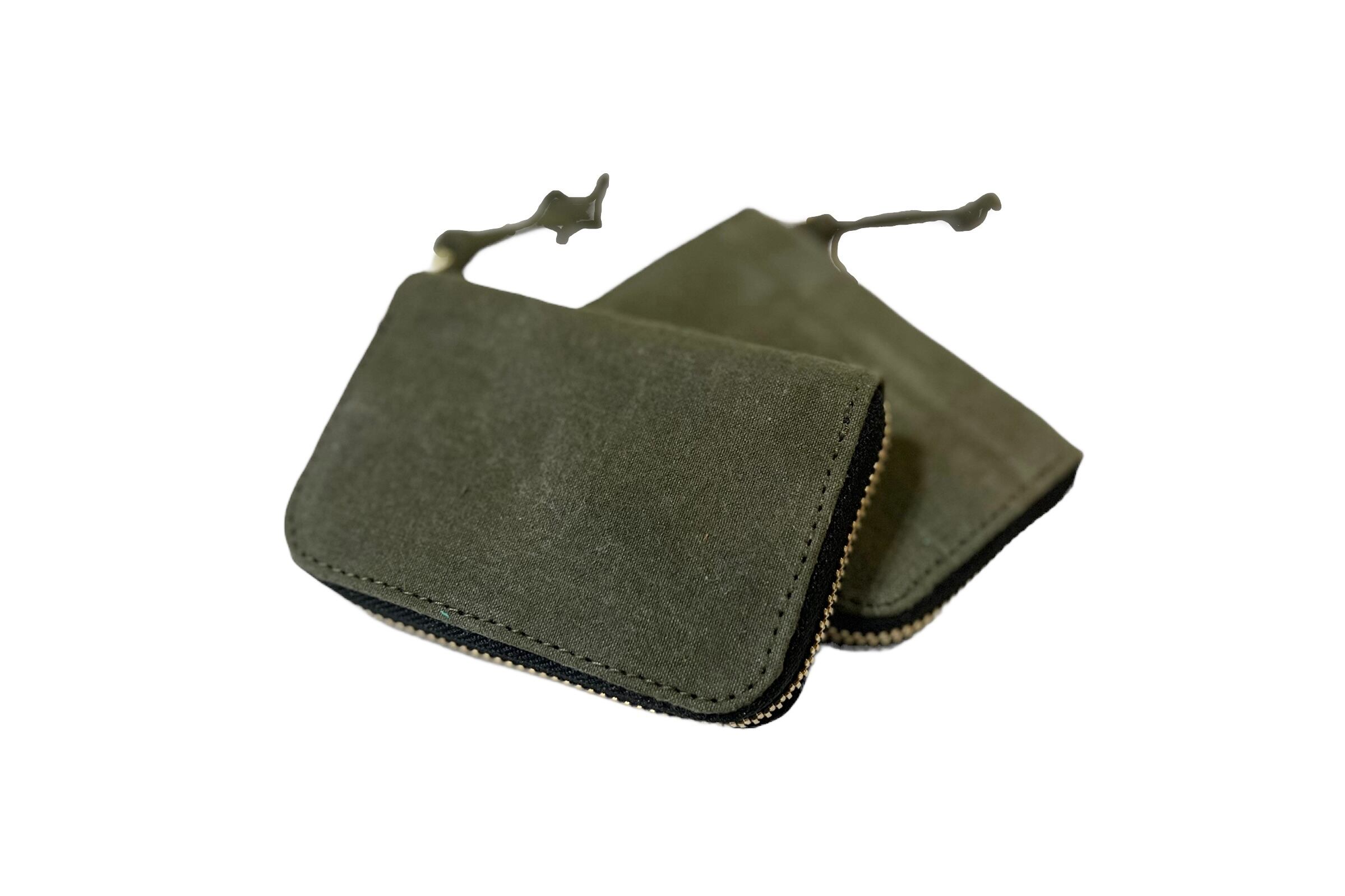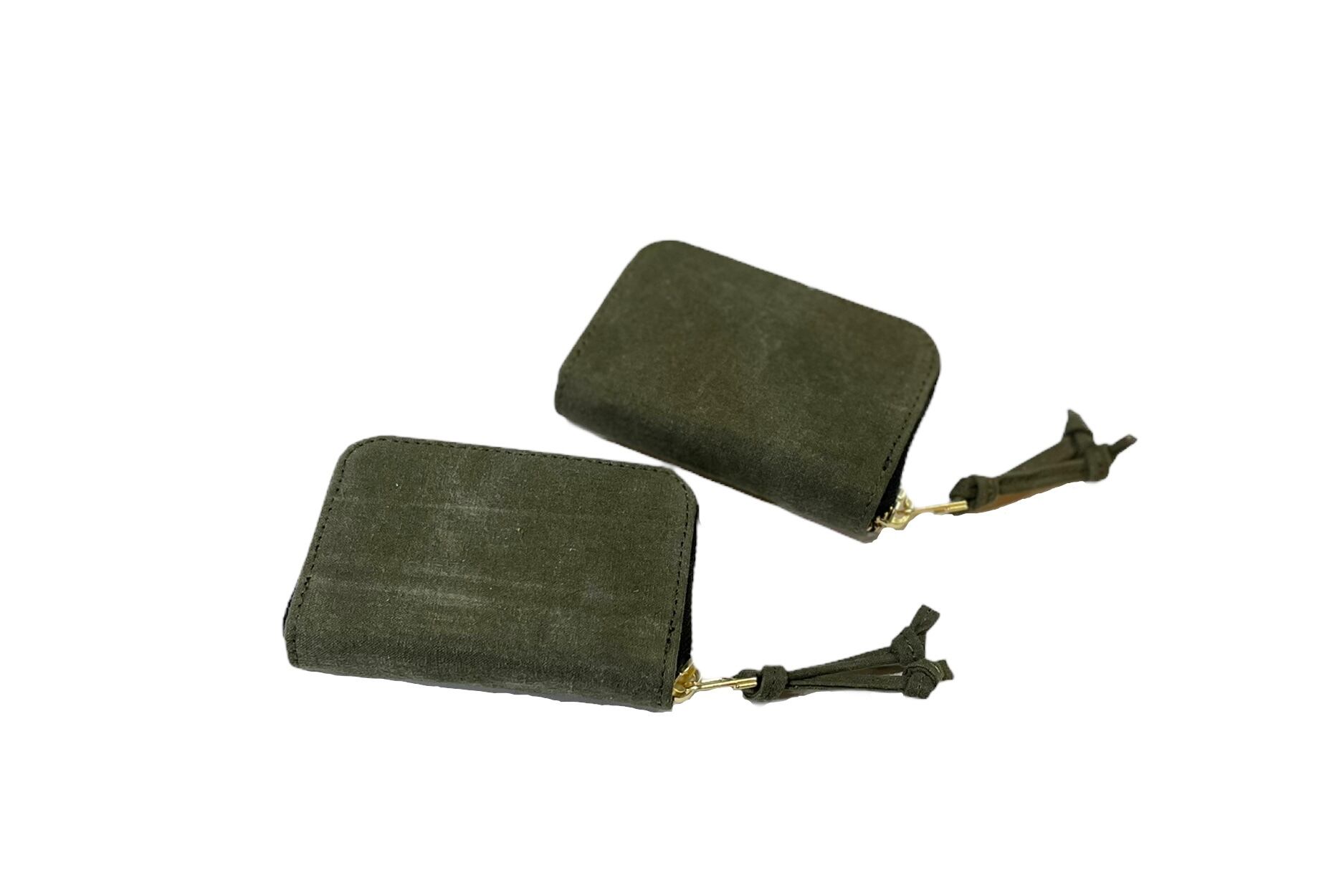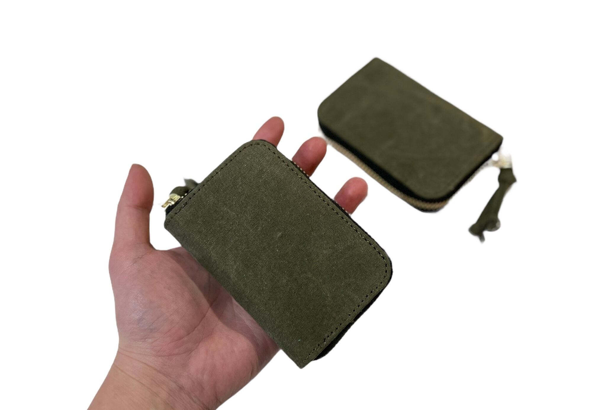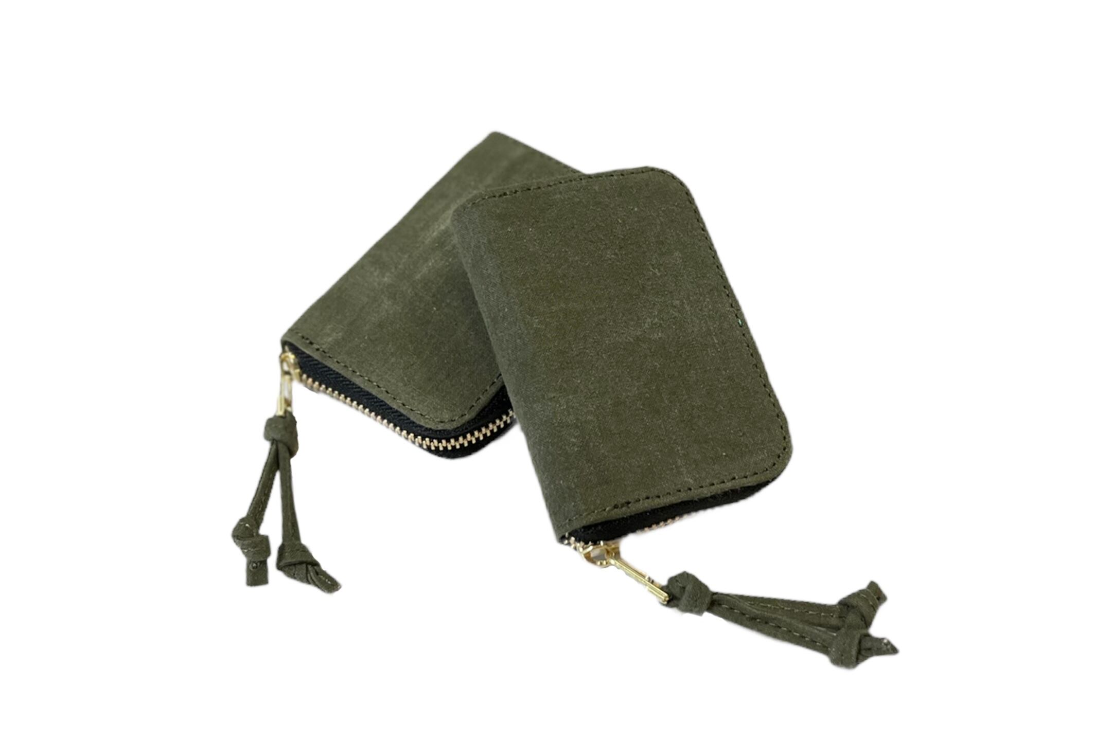 ヴィンテージのミリタリー生地を解体し使用したラウンドファスナー コインケース。