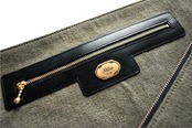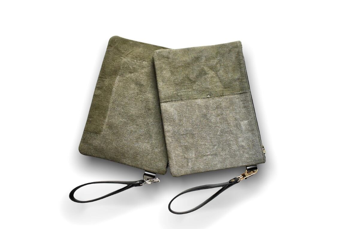 ヴィンテージのミリタリー生地を解体し使用したクラッチバッグ。
